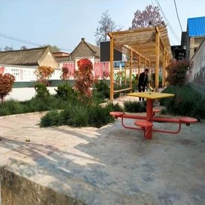 12、花園村:游園在村室旁邊,建有文體廣場,長廊,種有黃楊球、紅葉石楠等