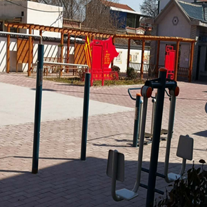 5、總管村:游園位于村室附近,其中建有走廊,運(yùn)動器材、文化舞臺,種植綠化樹