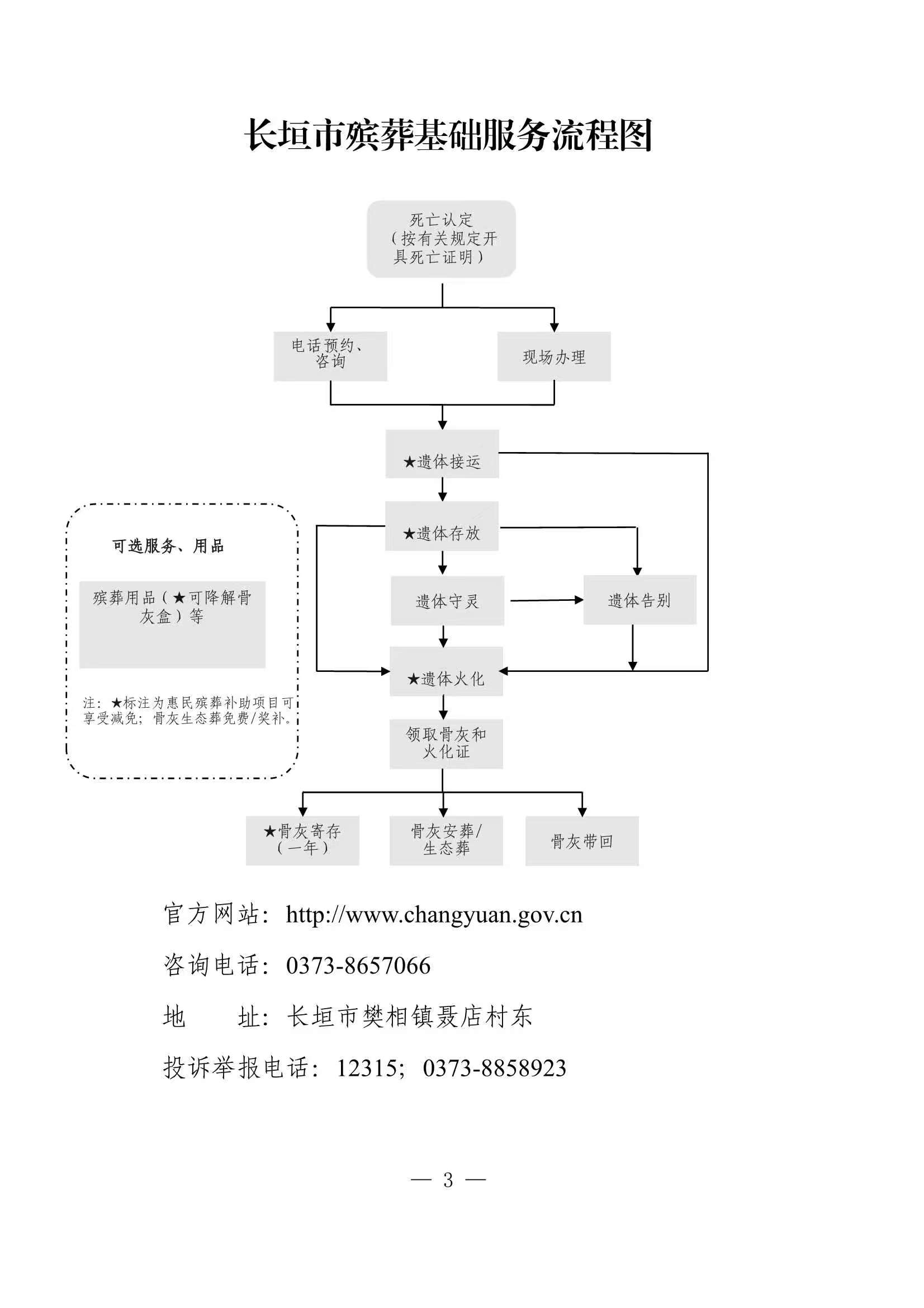 長垣市殯葬基礎服務“一口價”清單、長垣市殯葬基礎服務流程圖