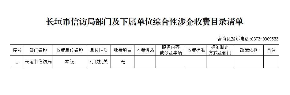 長垣市信訪局部門及下屬單位綜合性涉企收費目錄清單